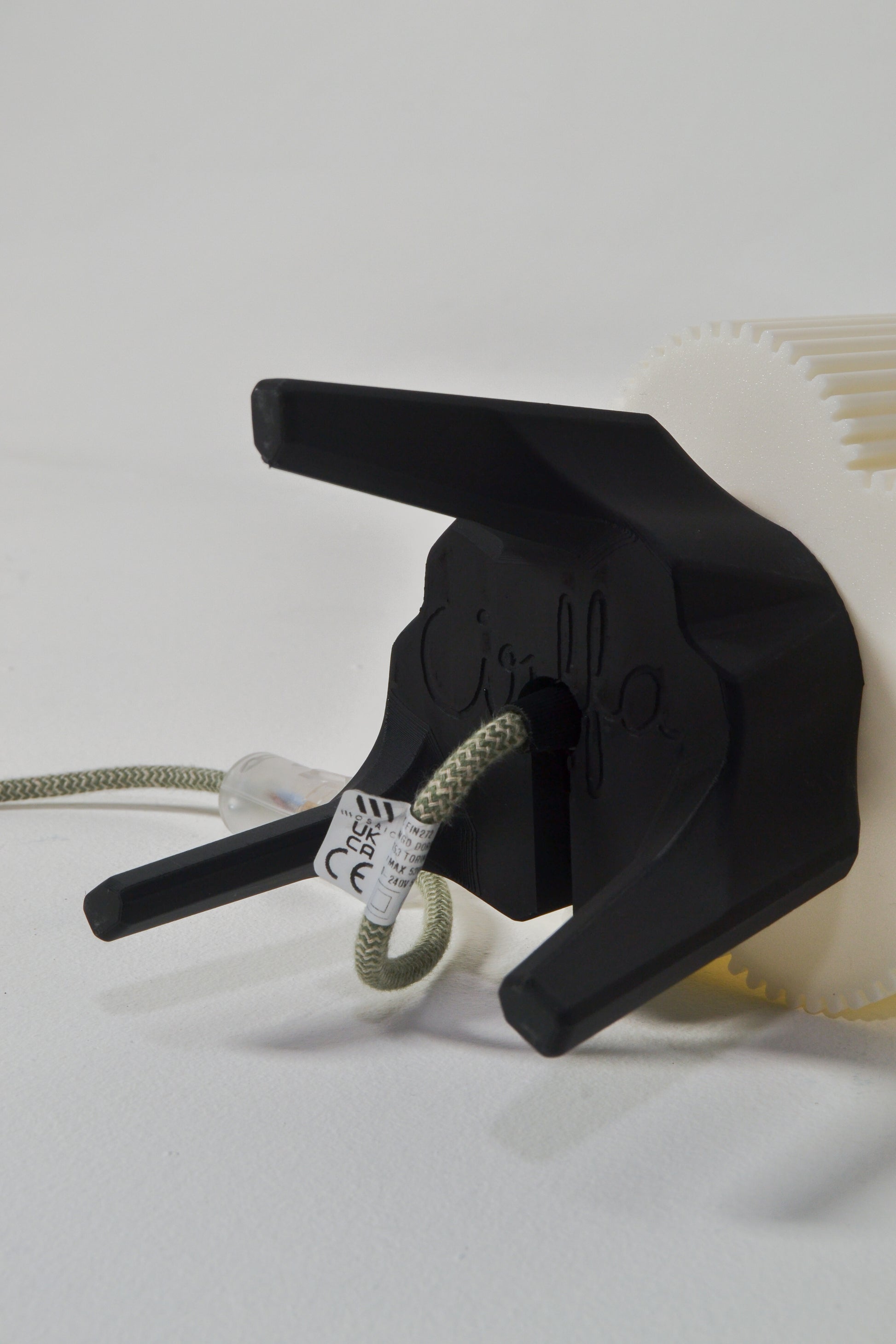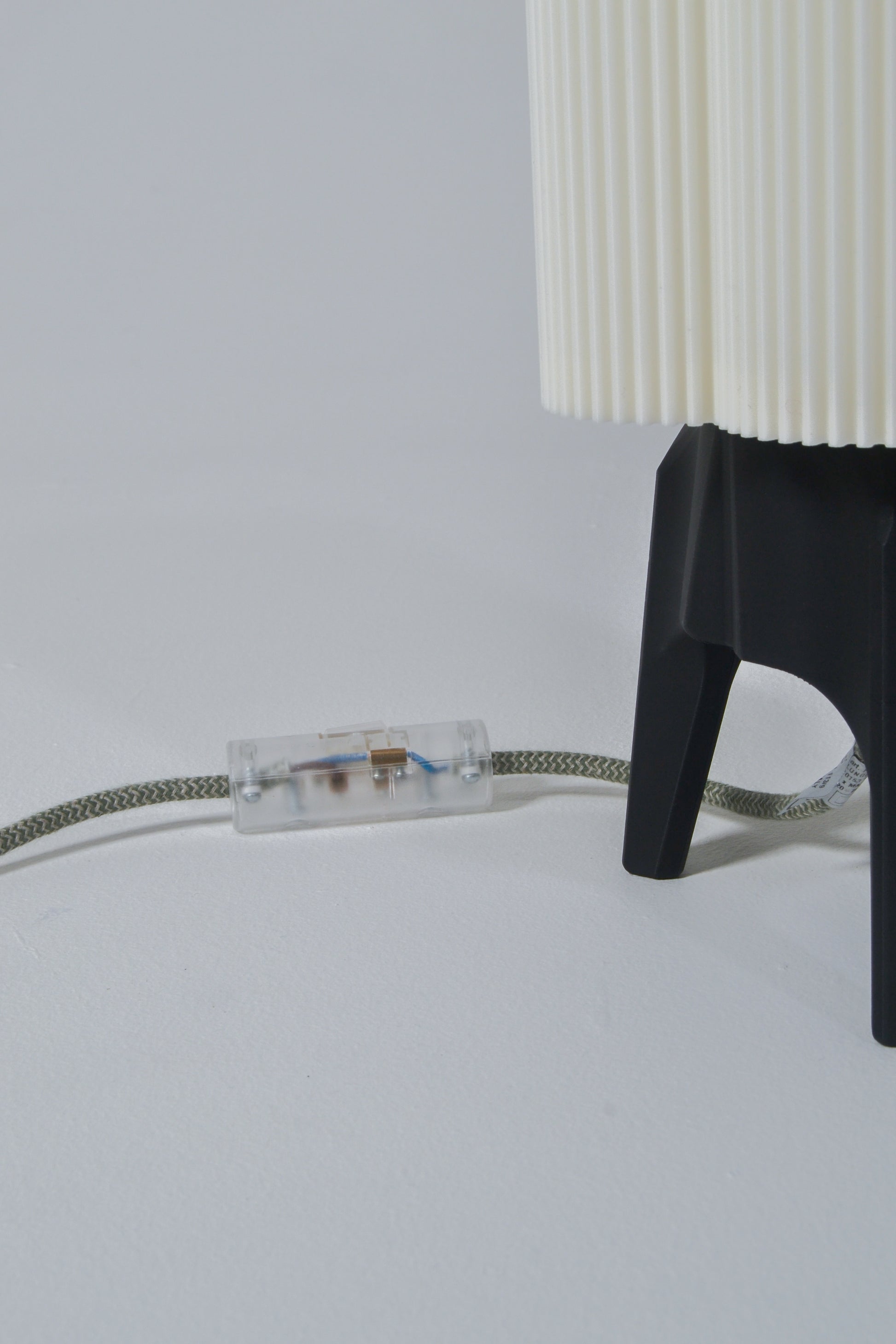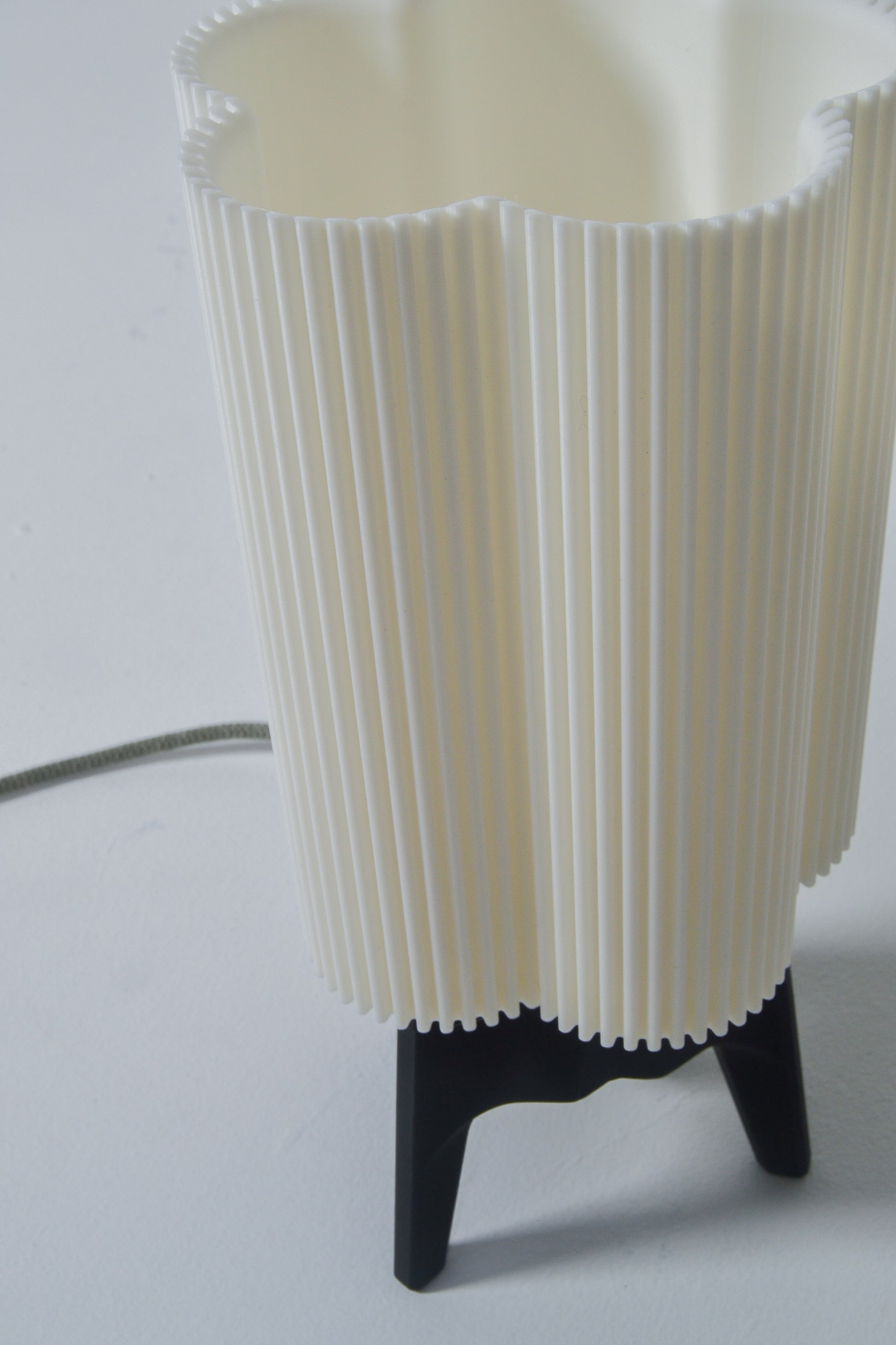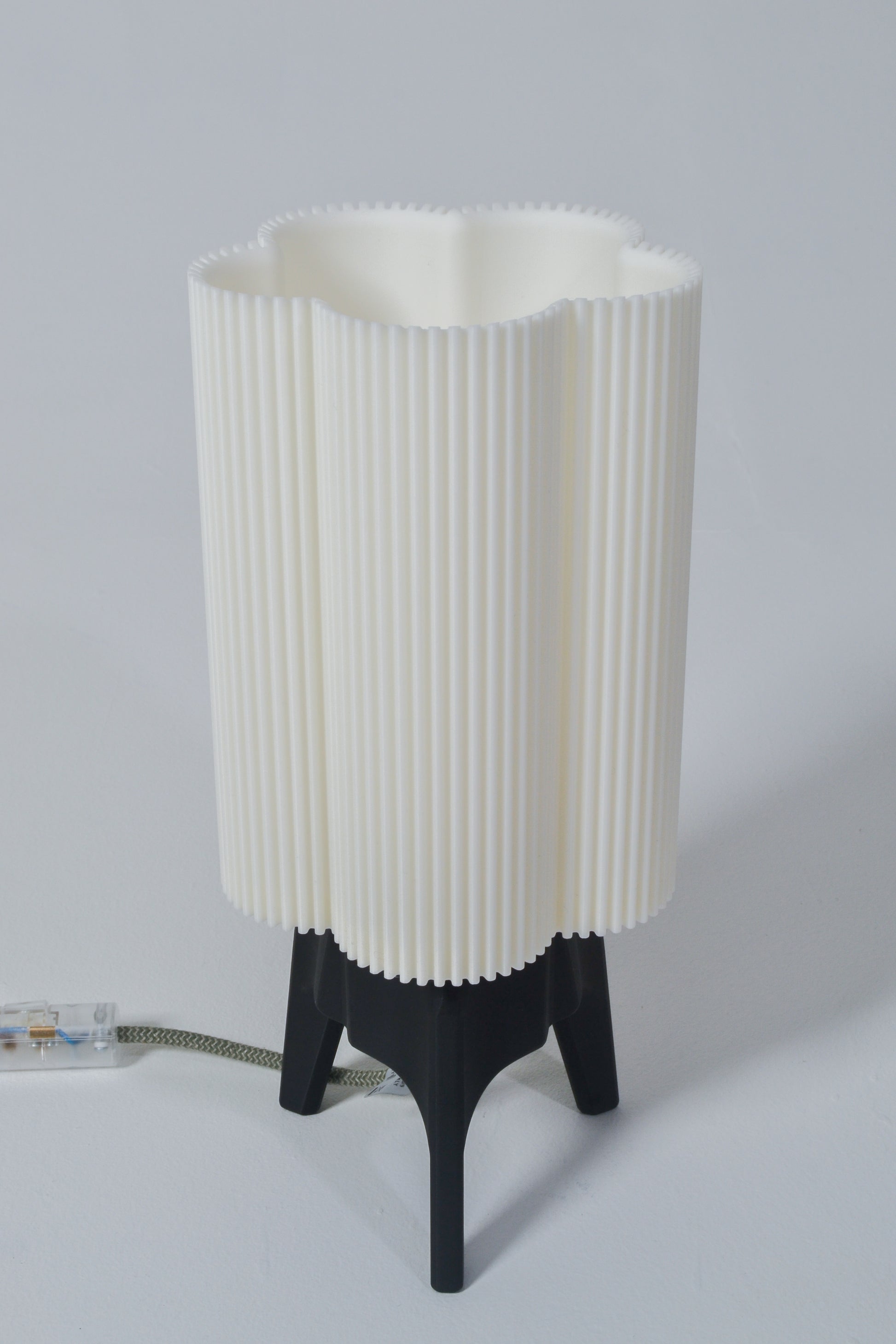 The light is supported by a sturdy, fully 3D-printed tripod base and fitted with a bespoke light fitting and bulb, crafted in Italy by Mosaicluce.