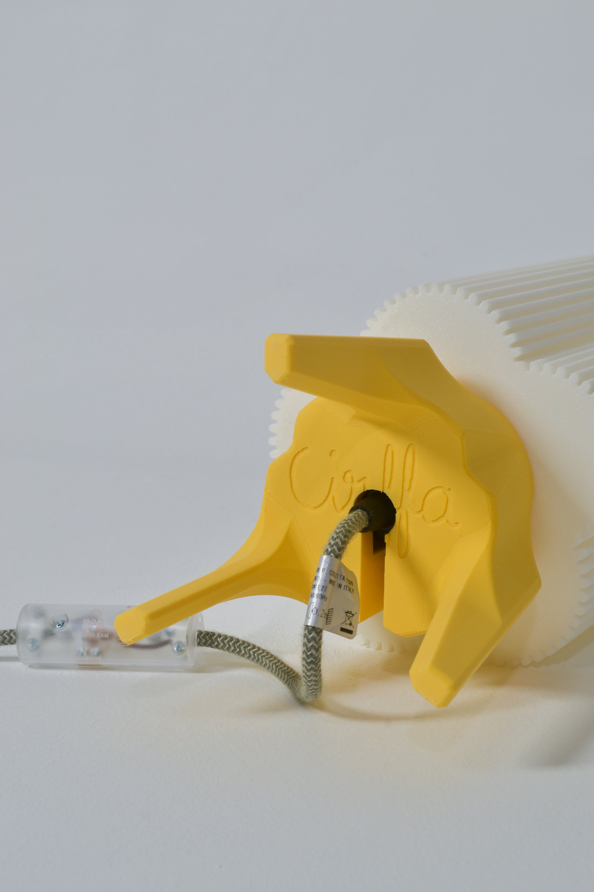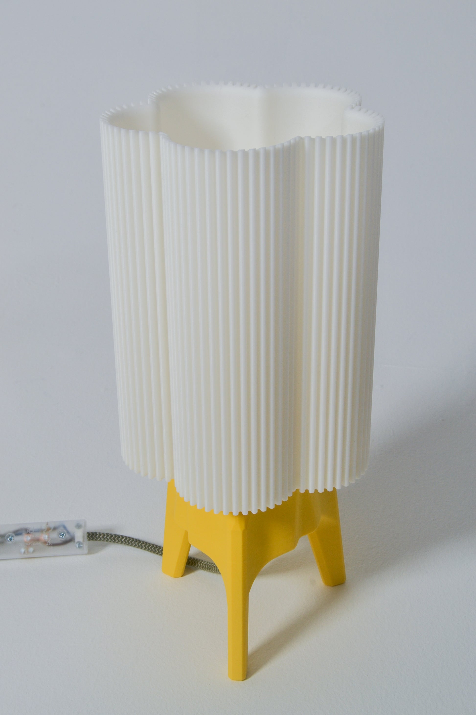 The light is supported by a sturdy, fully 3D-printed tripod base and fitted with a bespoke light fitting and bulb, crafted in Italy by Mosaicluce.